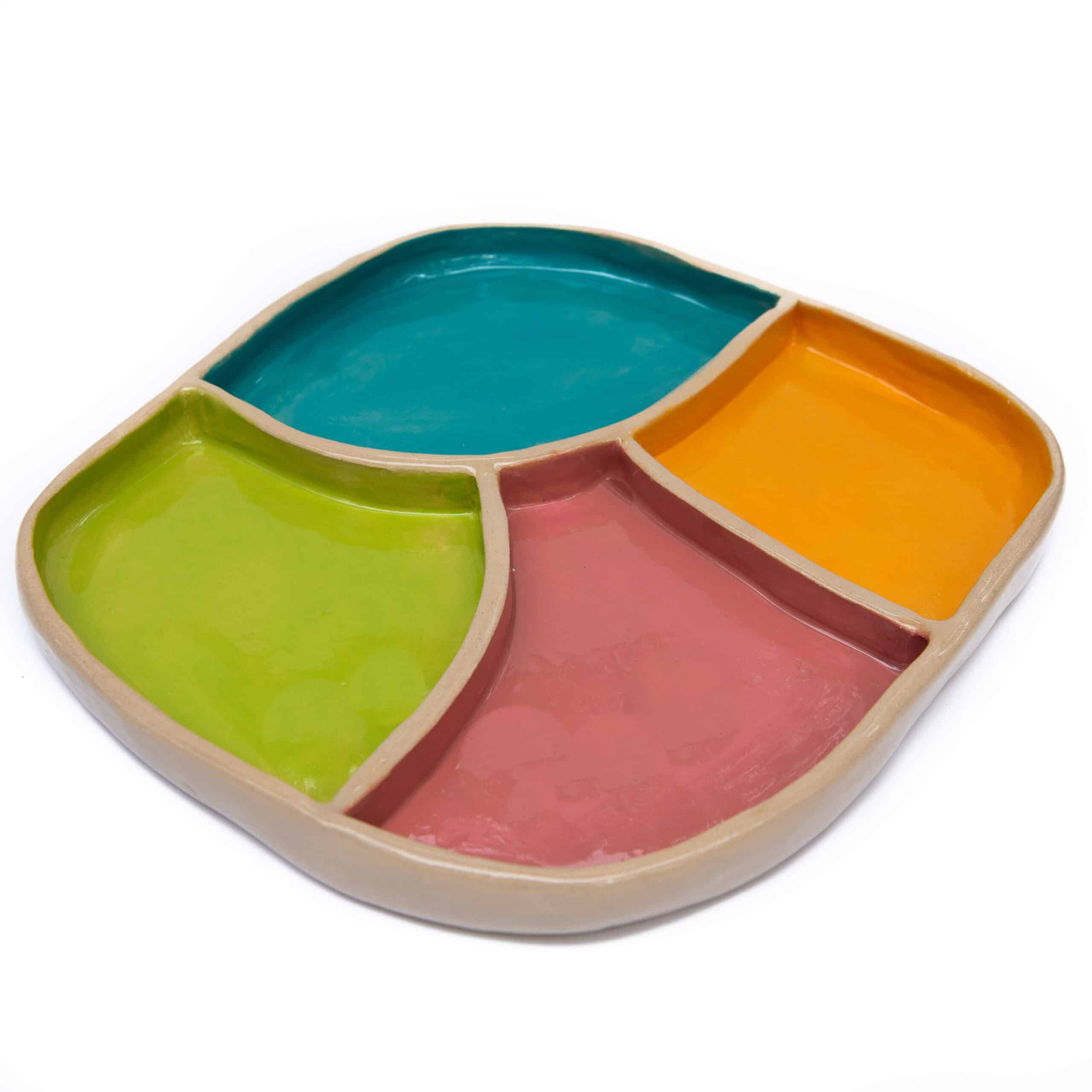 Er is keuze aan verschillende kleuren glazuur. aan de hand van voorbeelden kan je de kleuren kiezen. Ook voor de tapas bordjes zijn er speciale kleuren voorzien.
